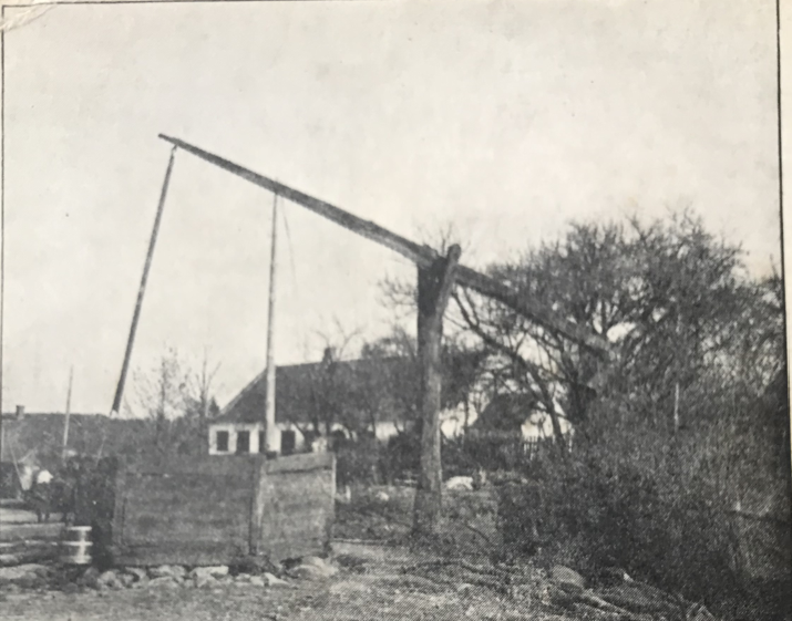 Kilde: Billede af den gamle brønd i Toustrup, årstal 1915, udsnit af postkort afleveret af Laurits Madsen 1981, Gjern Lokalarkiv