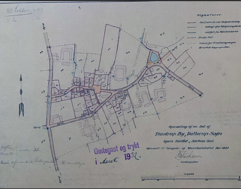 Kilde: Billede af kort over Toustrup By, omtegnet og trykt i 1932 efter kort fra 1928