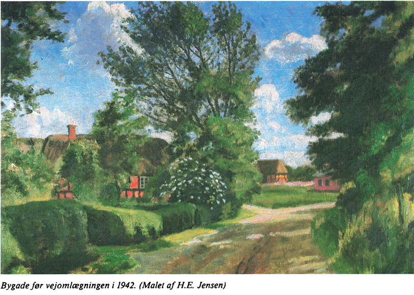 Byen bestod af to gader, den nordre og den søndre gade, som løb sammen neden for rytterskolen til én, som snoede sig videre ud af byen mod øst og ned mod Toustrup Mølle, som lå idyllisk i dalen nede ved banen Århus-Hammel.