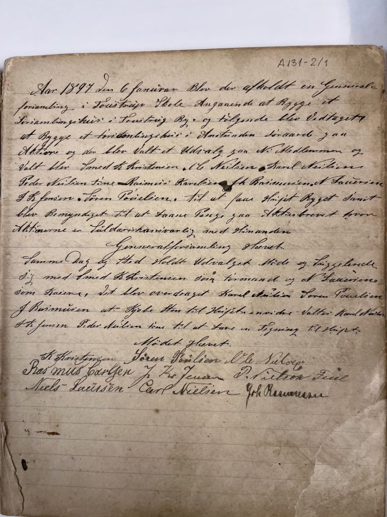 Kilde: Forhandlingsprotokol Toustrup Forsamlingshus, 1897, Gjern Lokalarkiv